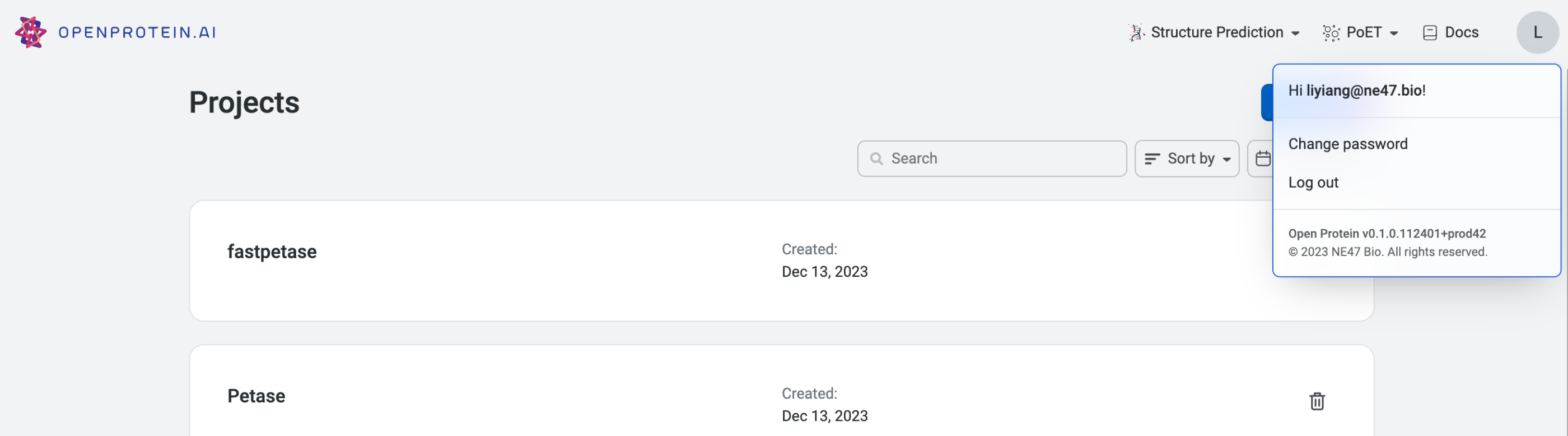 To change your password, navigate to the account icon on the top right corner of the page, and select Change password.